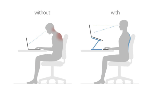 의자에 앉았을 때의 자세도 중요하지만, 모니터 높이를 올바르게 잘 설정해 높으면 장시간 앉아서 일할 때 편안한 자세를 오래 유지할 수 있게 되어 일의 능률을 높여준다.
